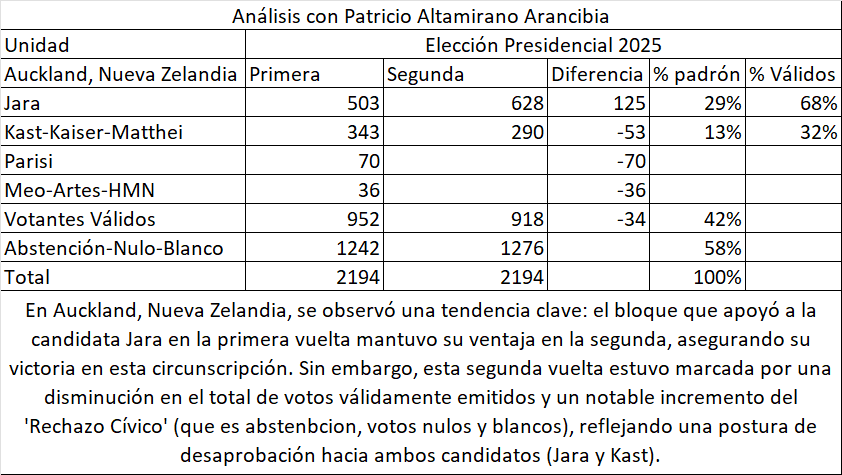 Resultado Segunda Vuelta en Auckland, Nueva Zelandia